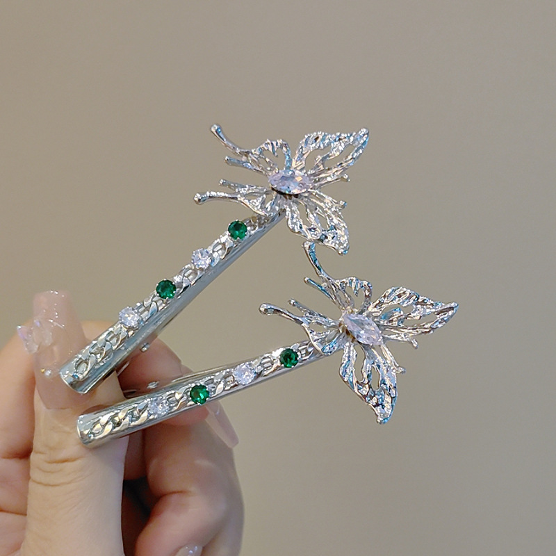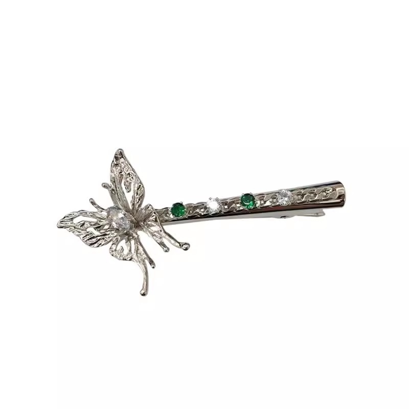 银色洋气金属发夹复古锆石蝴蝶元素辣妹镜面高街风甜酷y2k对边夹