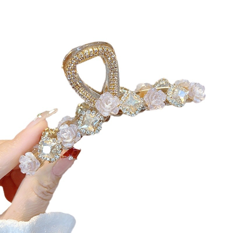 轻奢高亮花朵抓夹幻彩高级感水钻发夹韩版时尚鲨鱼夹发卡夹子头饰