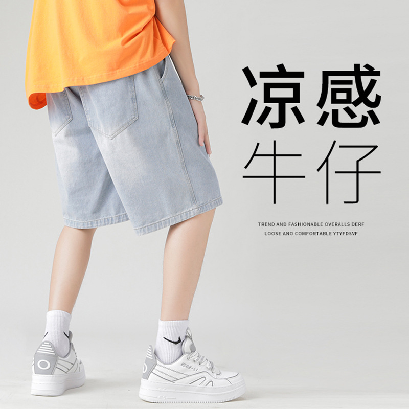 浅蓝色牛仔短裤男士夏季薄款潮牌五分裤子男宽松休闲复古直筒中裤