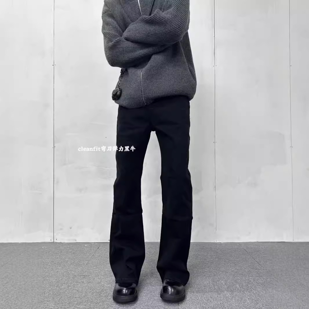 美式vibe裤子男款高街复古微喇黑色牛仔裤修身直筒时尚休闲长裤子