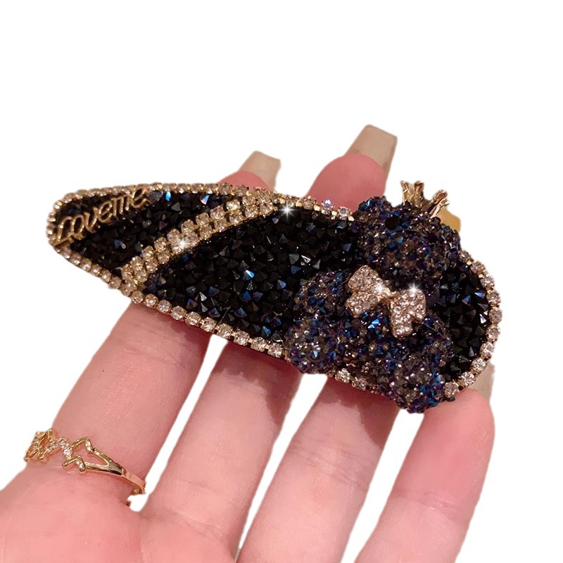 好好生活慢慢相遇~小熊阔爱闪钻发夹字母少女侧边刘海BB夹发饰