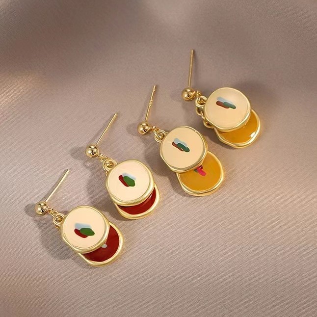 「油画少女」油画感vintage耳环不规则耳饰几何法式复古耳坠/耳夹