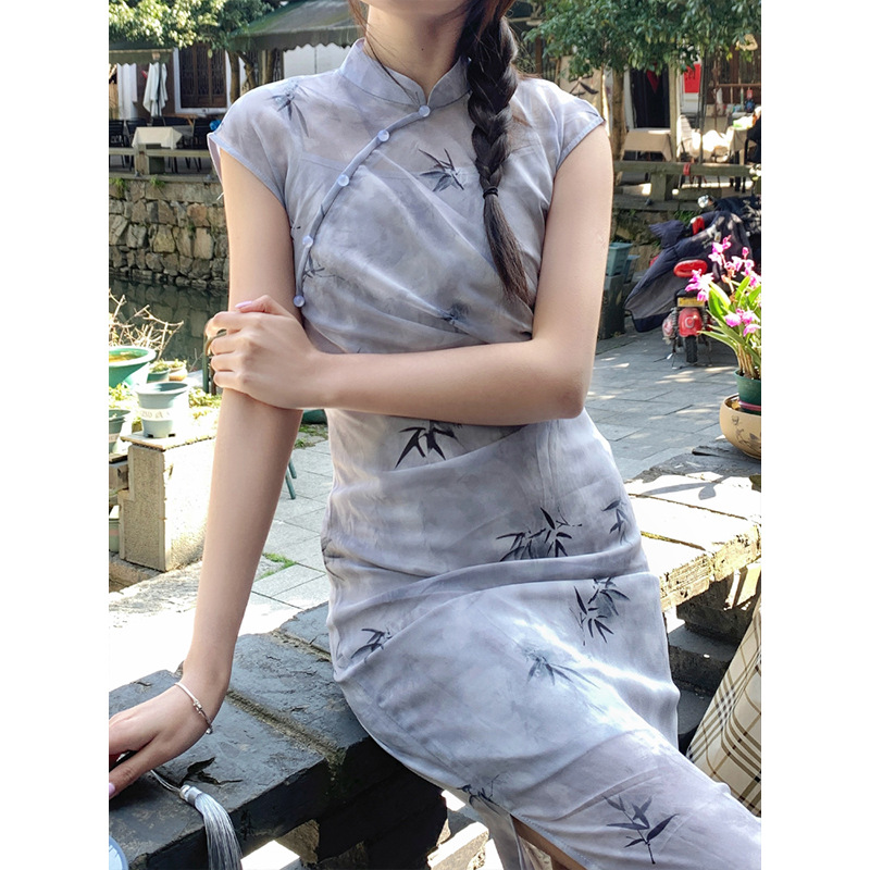新中式【扶桑】雾霭蓝旗袍女小个子两件套年轻款少女夏季新款