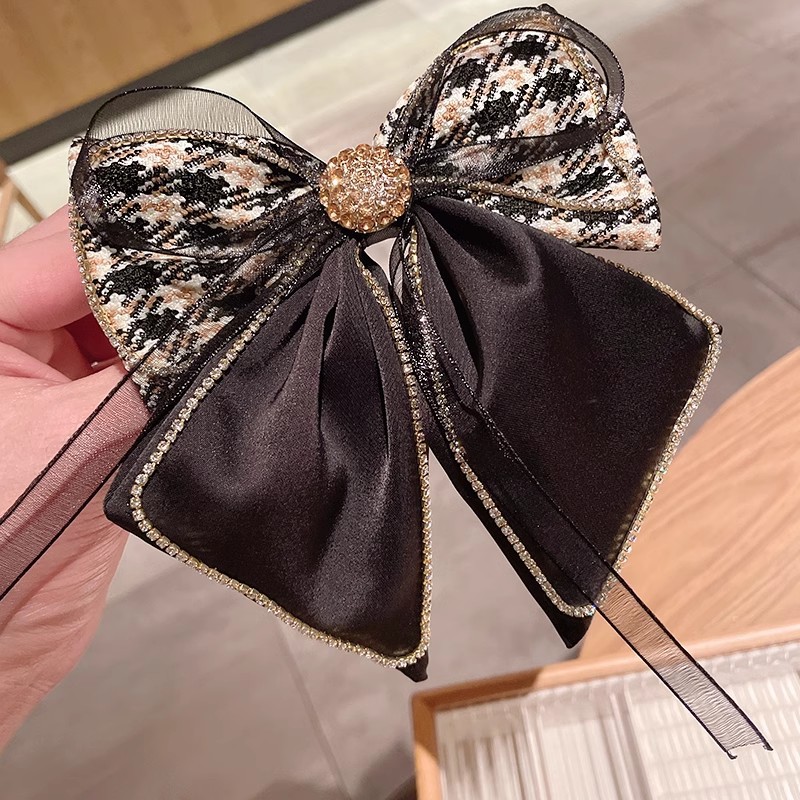 泡沫之夏!少女丝带蕾丝风绿格子蝴蝶结新款发夹女顶夹森系弹簧夹