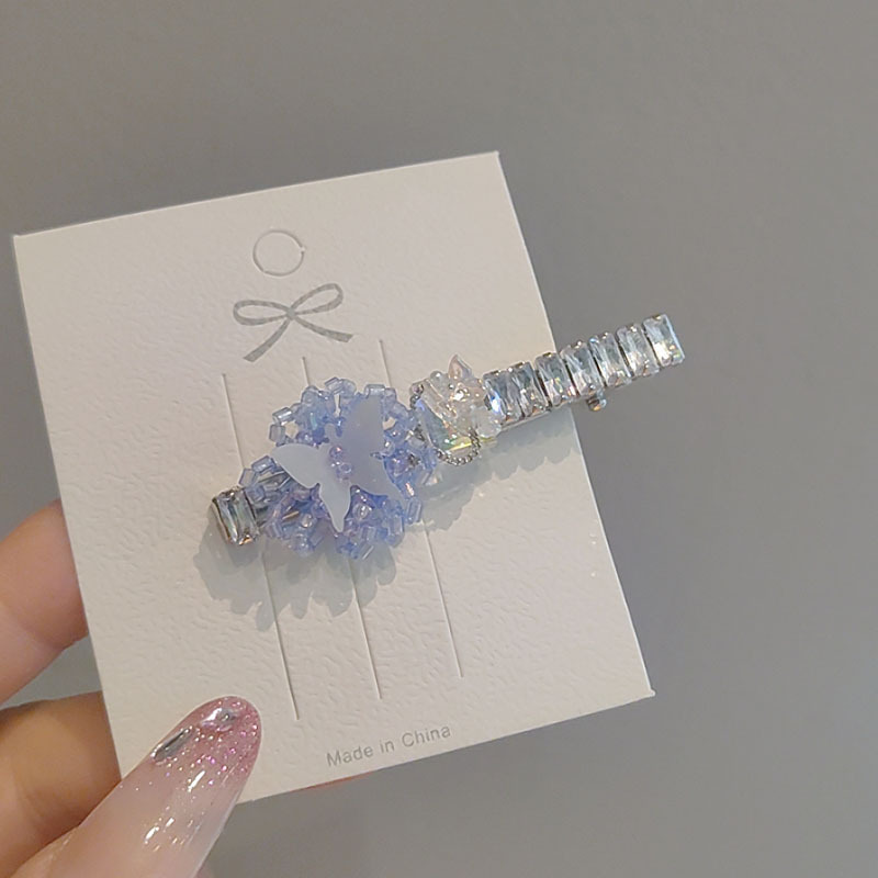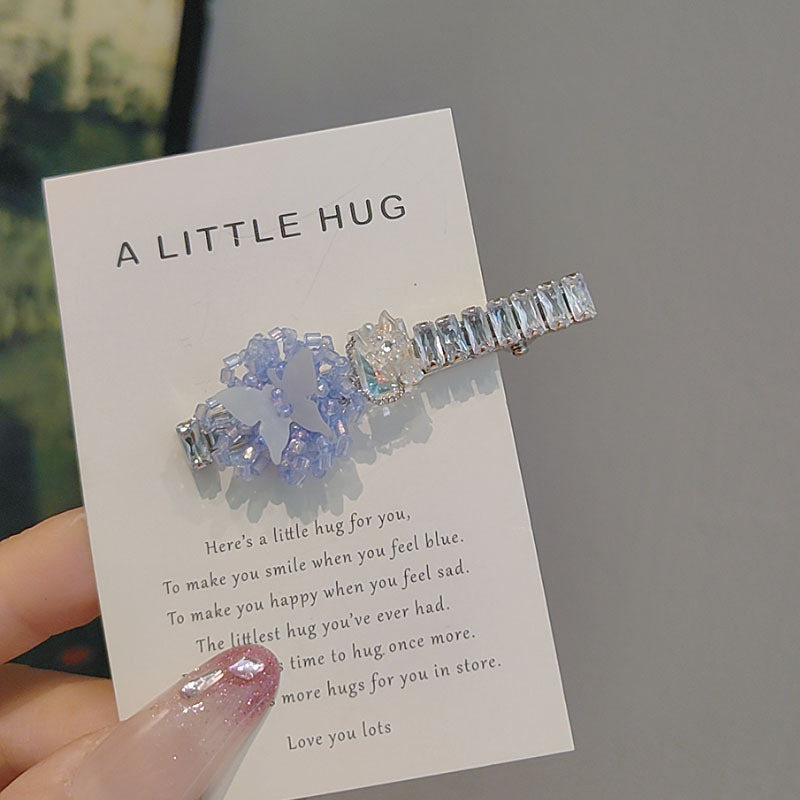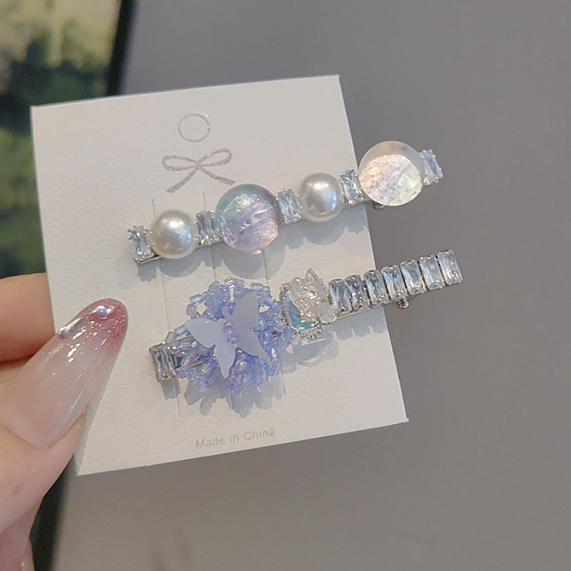 两个装 锆石蓝串珠蝴蝶+珍珠透明发夹