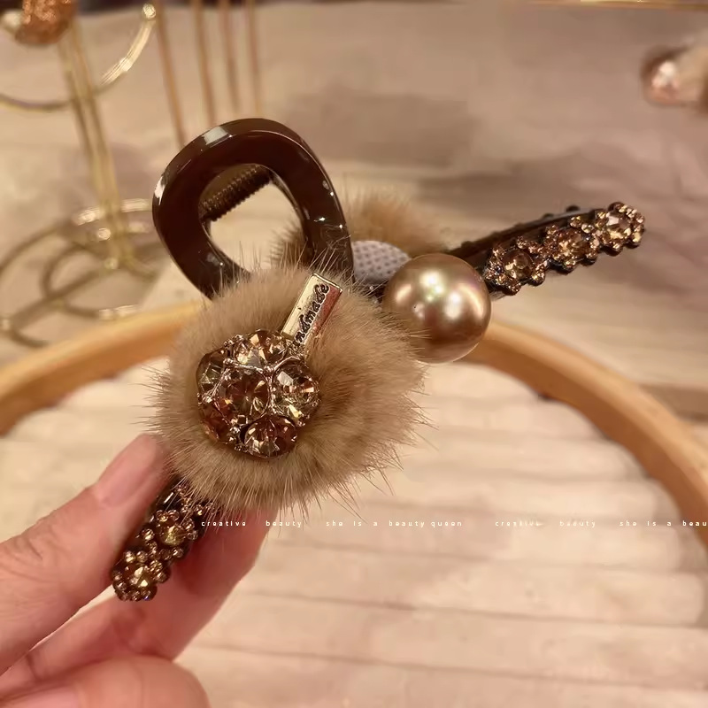 咖色珍珠毛毛水钻11cm