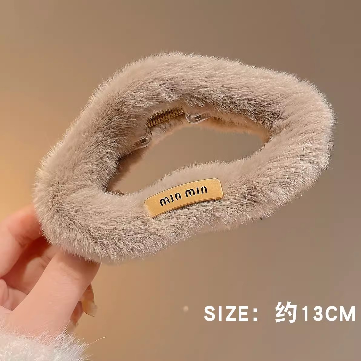 卡其云朵毛毛抓夹长13cm