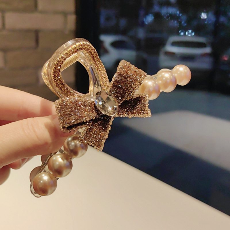 水钻香槟色蝴蝶结抓夹长11cm