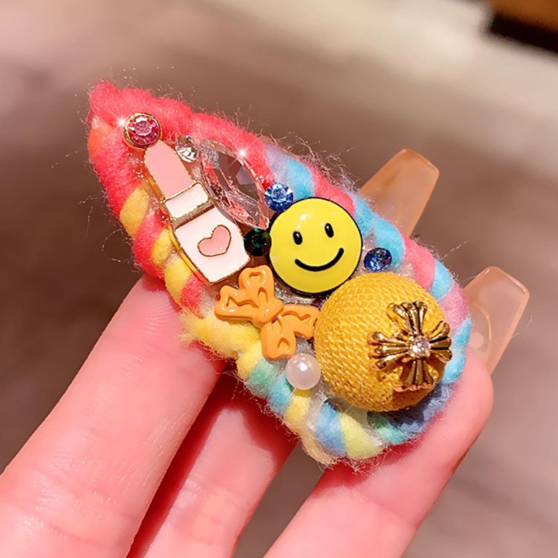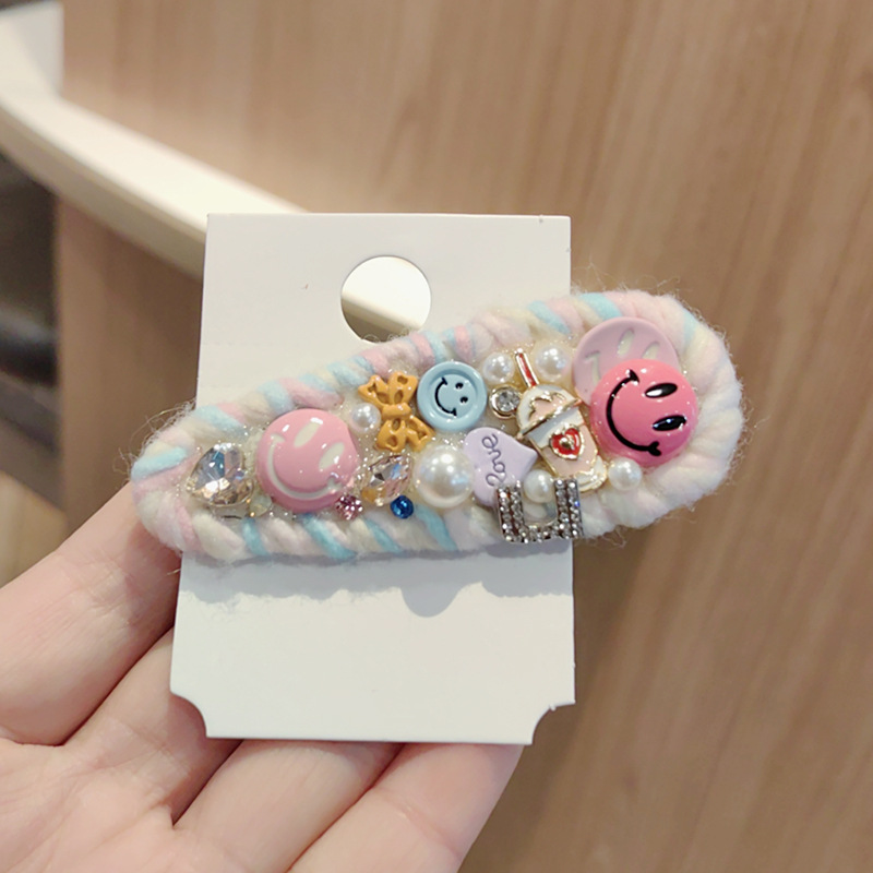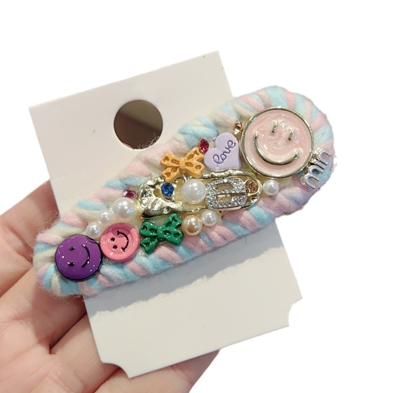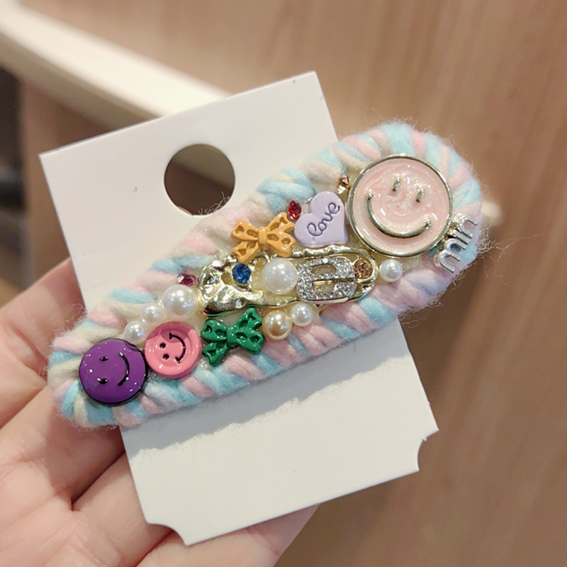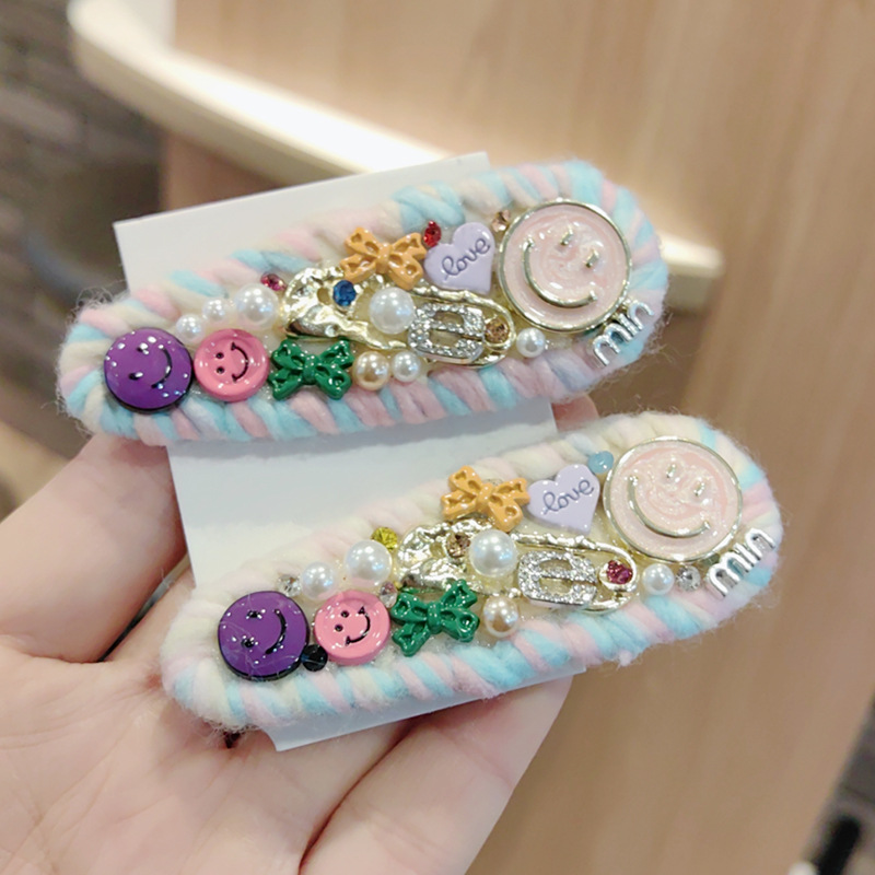 水滴彩色毛线编织笑脸发夹