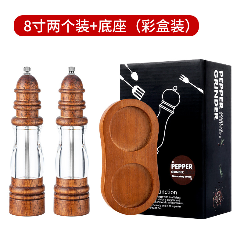 现磨胡椒研磨器家用手动碎海盐花椒胡椒粉研磨器实木灯塔胡椒磨