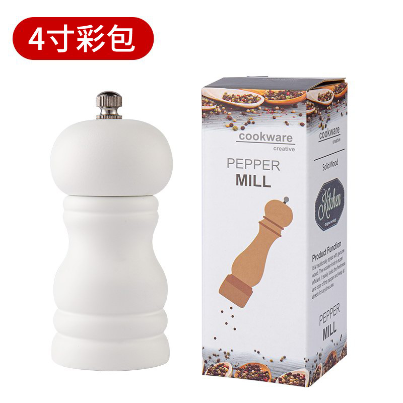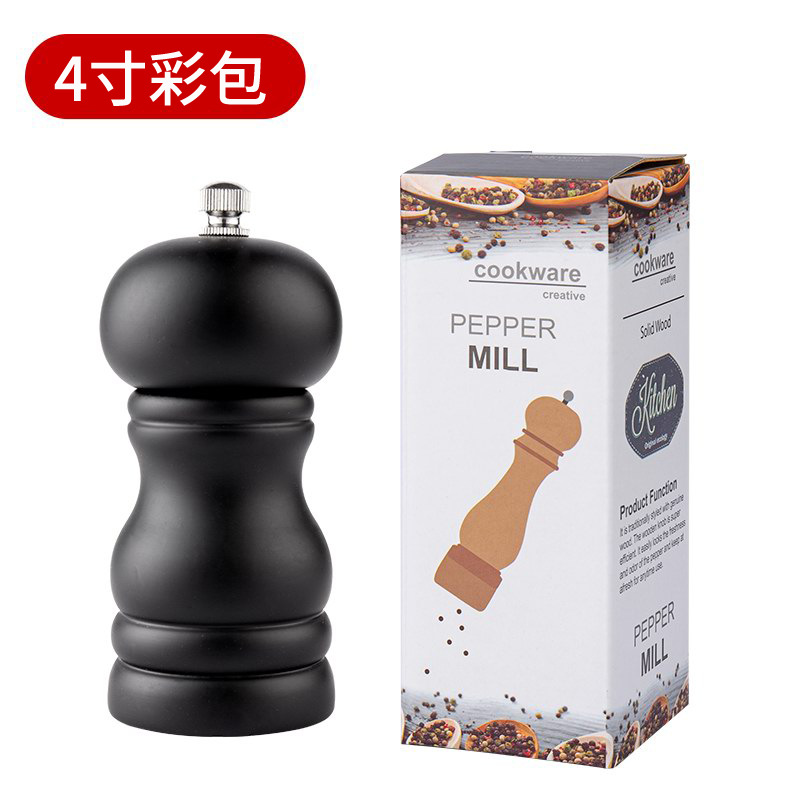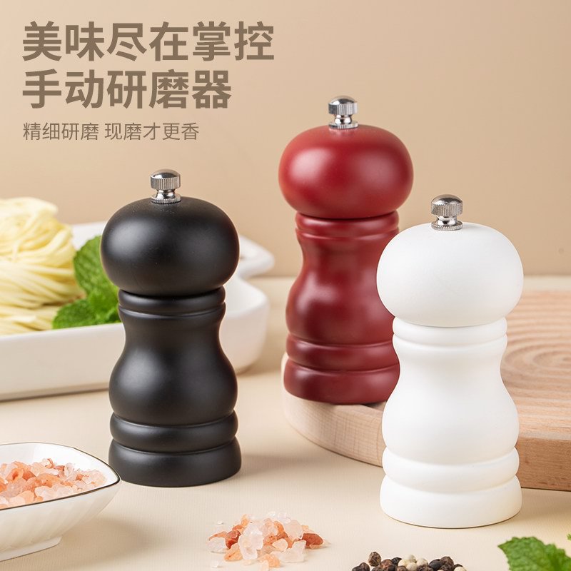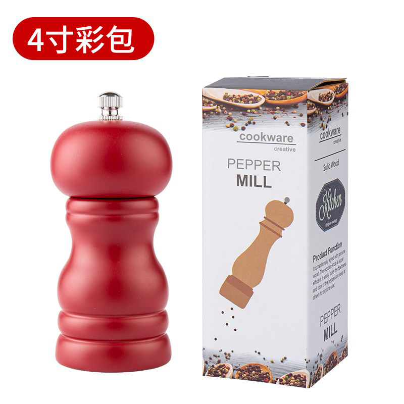 4寸实木胡椒粉研磨器黑胡椒花椒现磨手动研磨器厨房PU烤漆胡椒磨