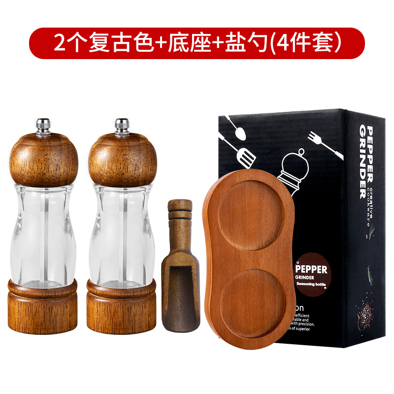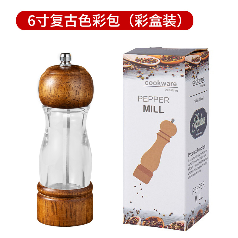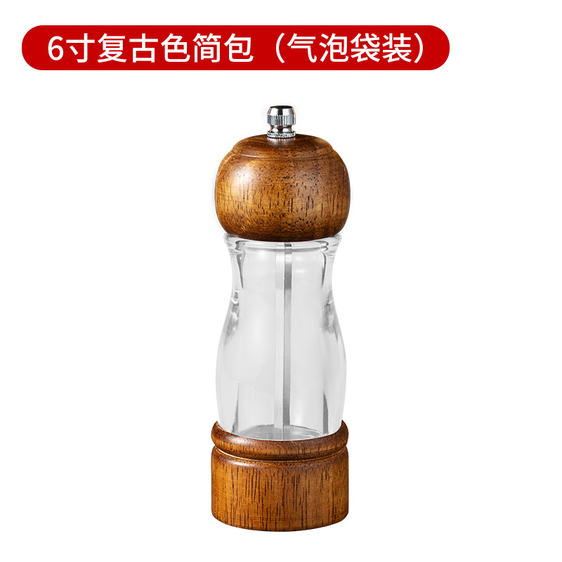 实木胡椒研磨器透明塑料胡椒磨橡木黑胡椒花椒玫瑰盐研磨瓶调料瓶