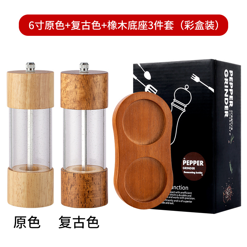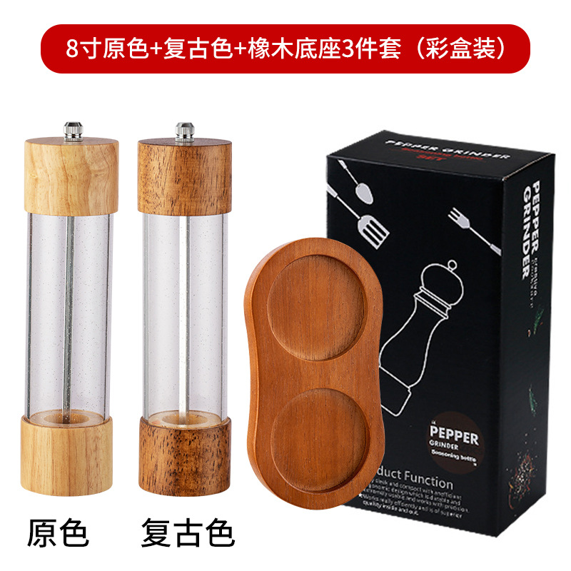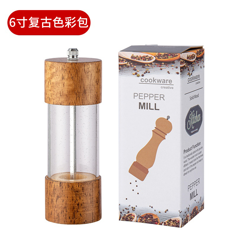 星空木质透明亚克力胡椒研磨器手动花椒黑胡椒粉磨玫瑰海盐研磨瓶