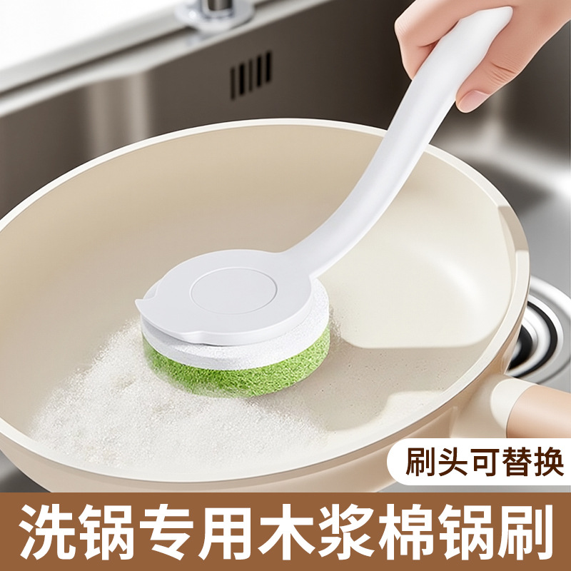 刷锅神器厨房洗锅刷不伤涂层木浆棉清洁刷锅刷加长带柄不伤锅