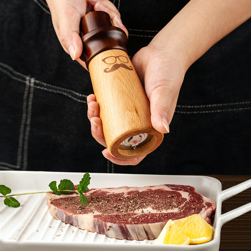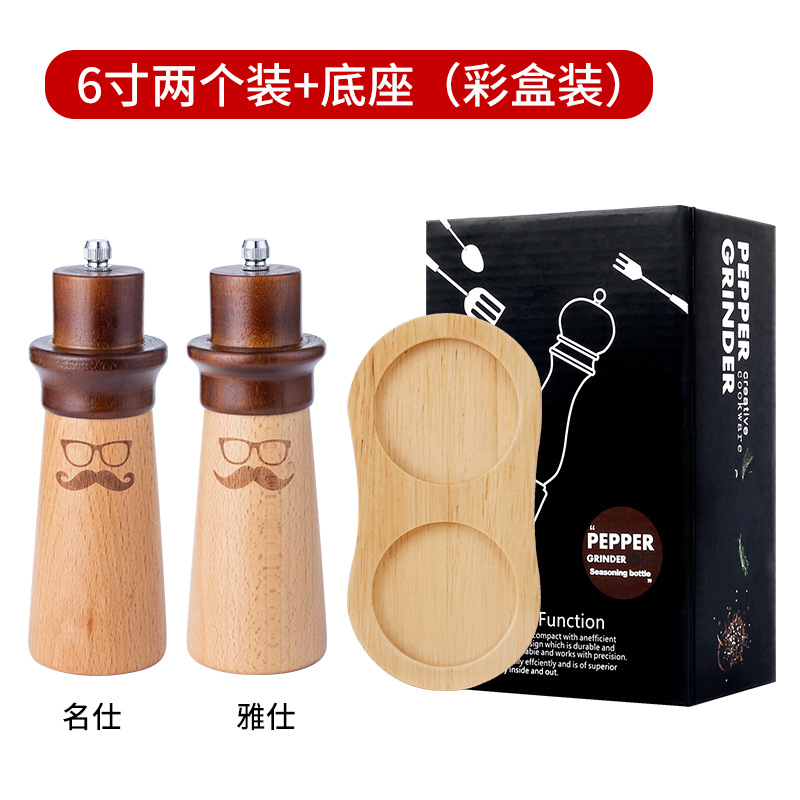创意绅士胡椒研磨器实木质黑胡椒磨厨房海盐玫瑰盐研磨瓶调料瓶