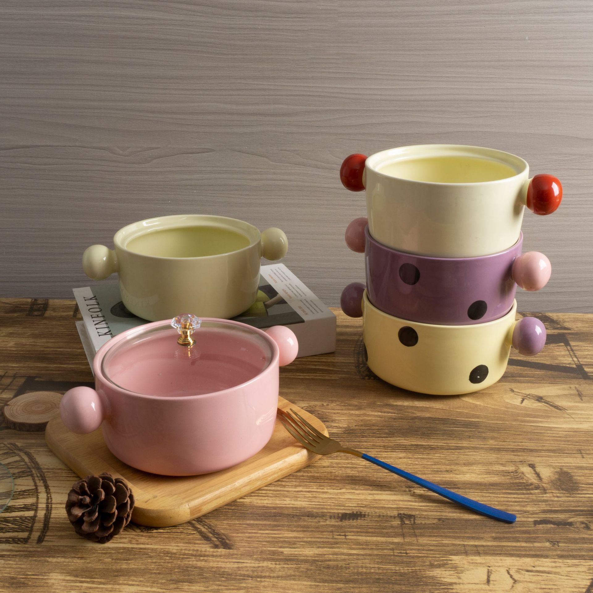 纯色可爱陶瓷泡面碗带盖双耳家用双耳碗汤碗