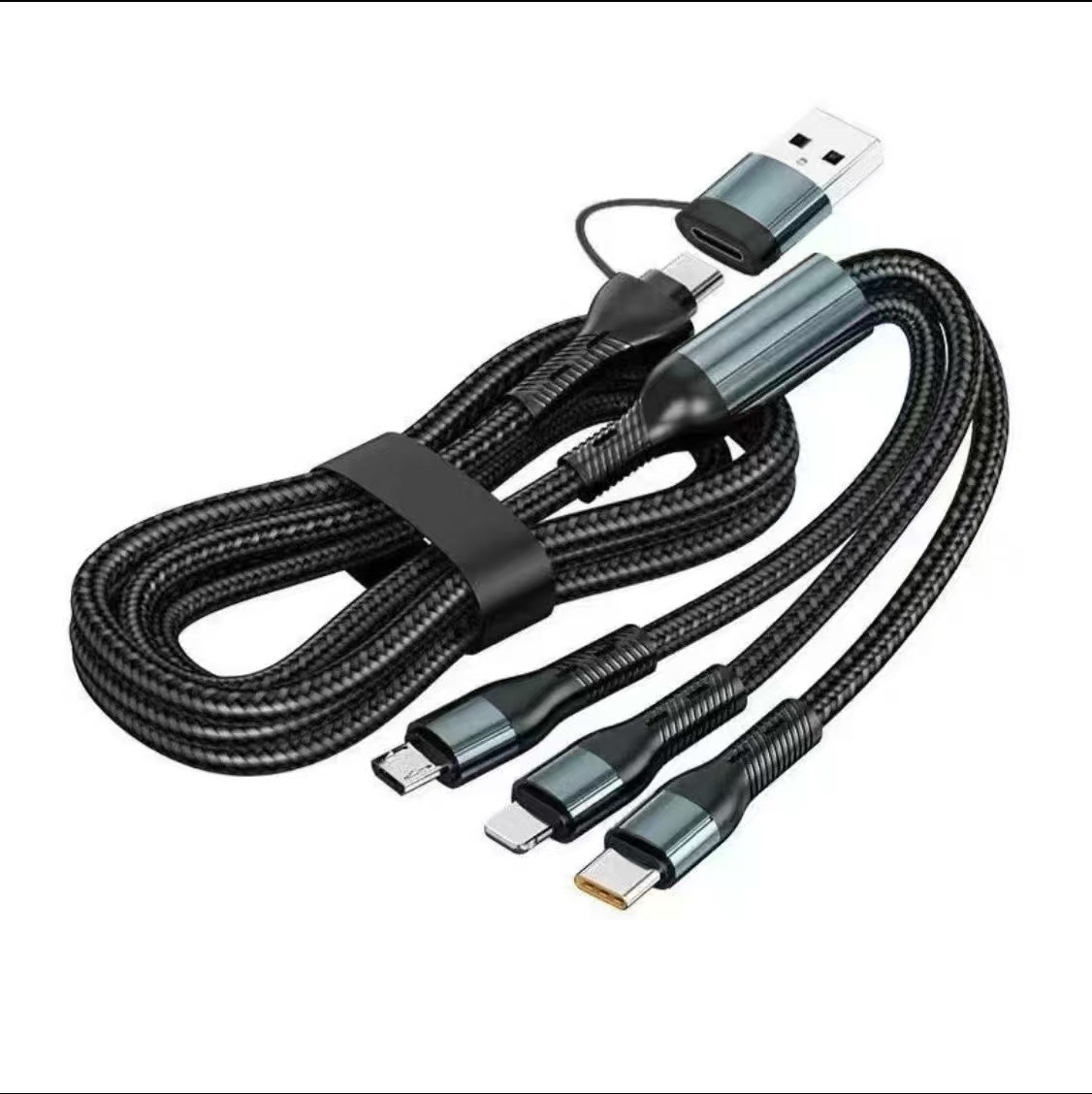 新款120W二拖三数据线typc超级快充车载PD五合一手机一拖三充电线