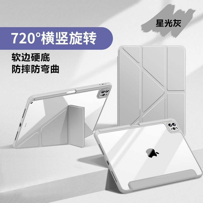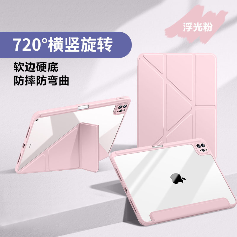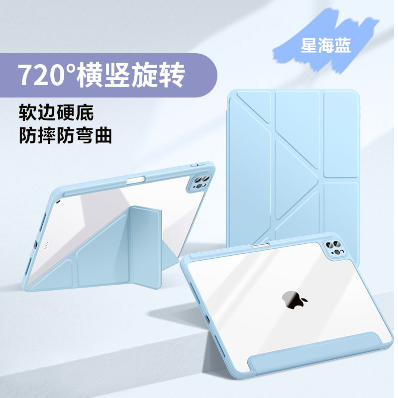 适用ipad pro11保护壳air6/5亚克力防弯Air13透明10.2Y折防摔皮套