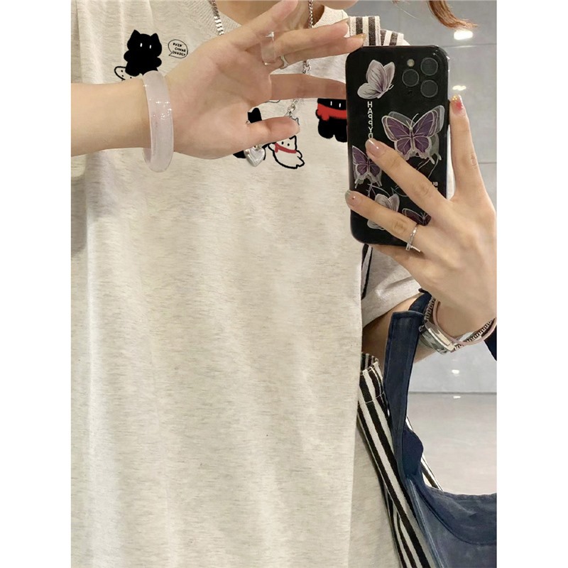 莫代尔洋气短袖t恤女夏季韩版新版宽松印花正肩显瘦休闲上衣