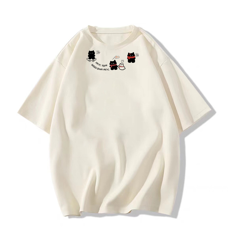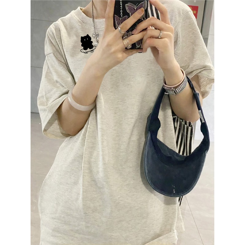 夏季200斤纯棉短袖t恤女新款爆款设计感小众美式宽松半袖上衣