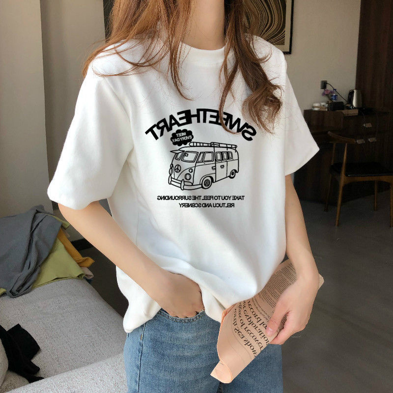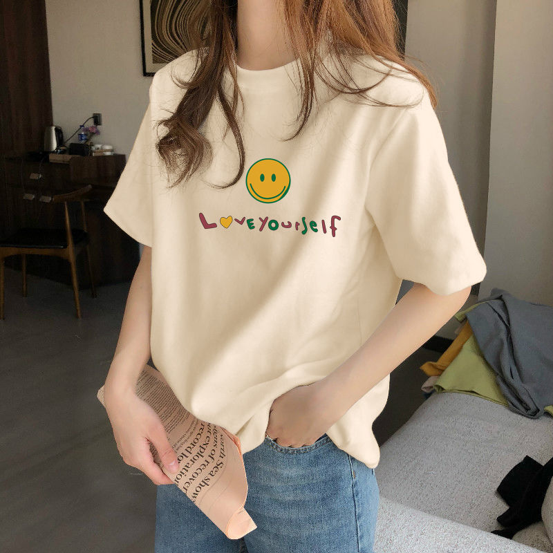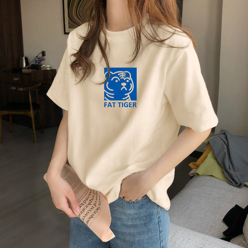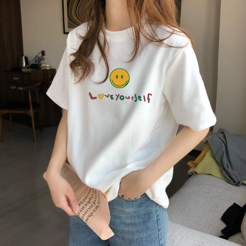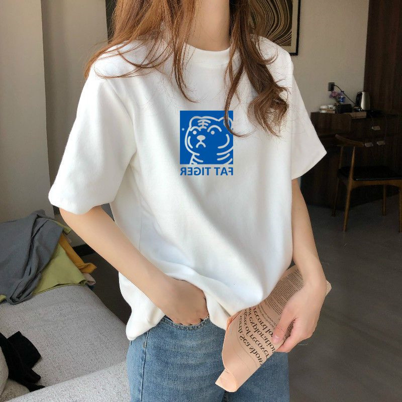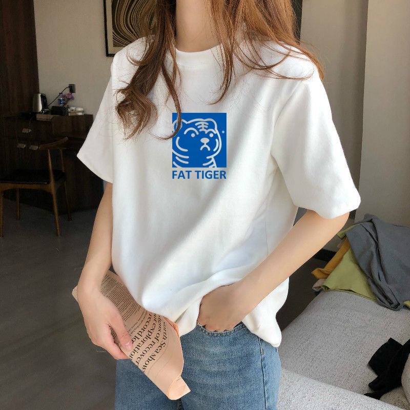 夏季新款正肩纯棉短袖T恤女休闲时尚减龄显瘦白色体恤上衣潮