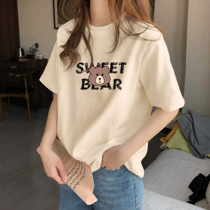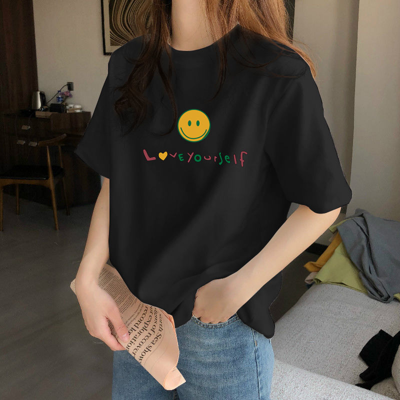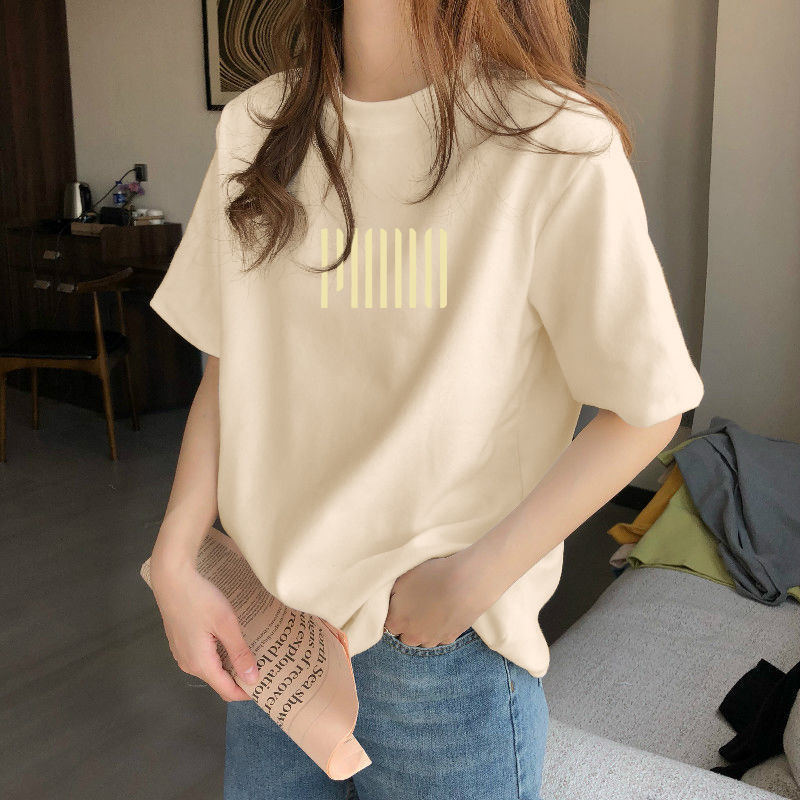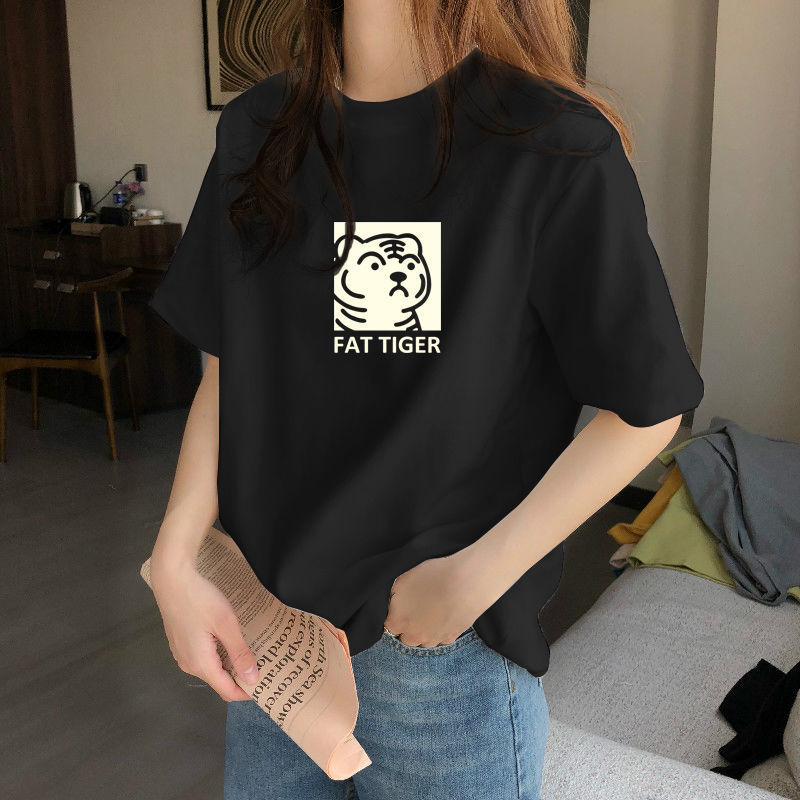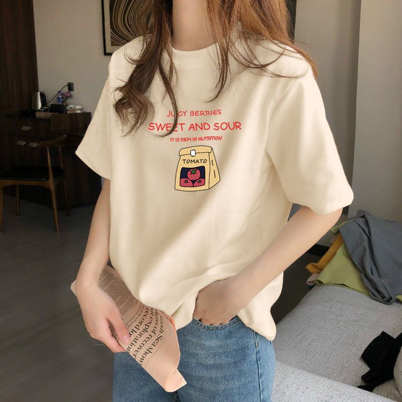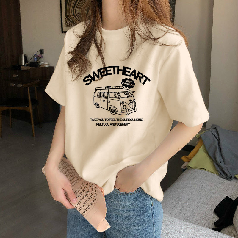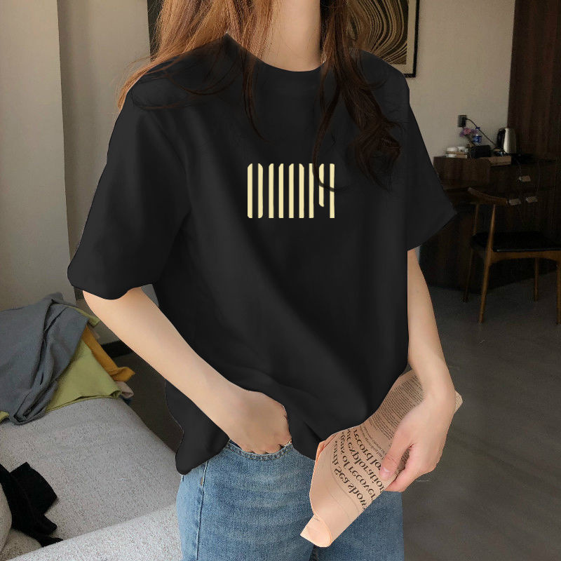 夏季新款正肩纯棉短袖T恤女休闲时尚减龄显瘦白色体恤上衣潮