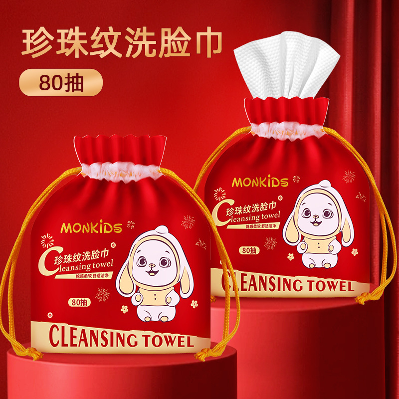 红色喜庆洗脸巾一次性洁面巾加厚珍珠纹美容院洗面巾抽取式棉柔巾