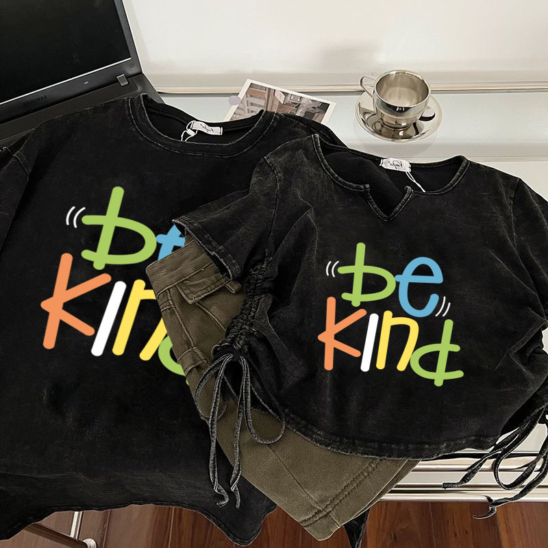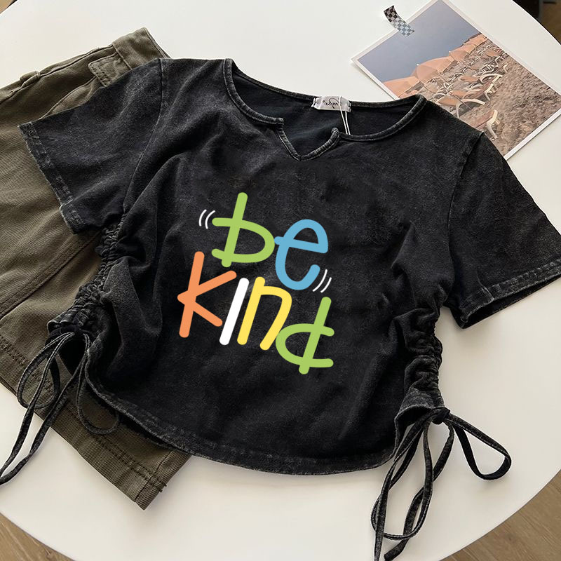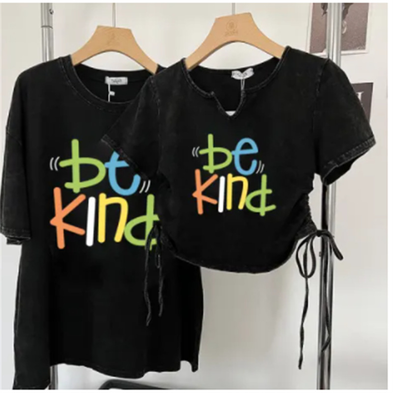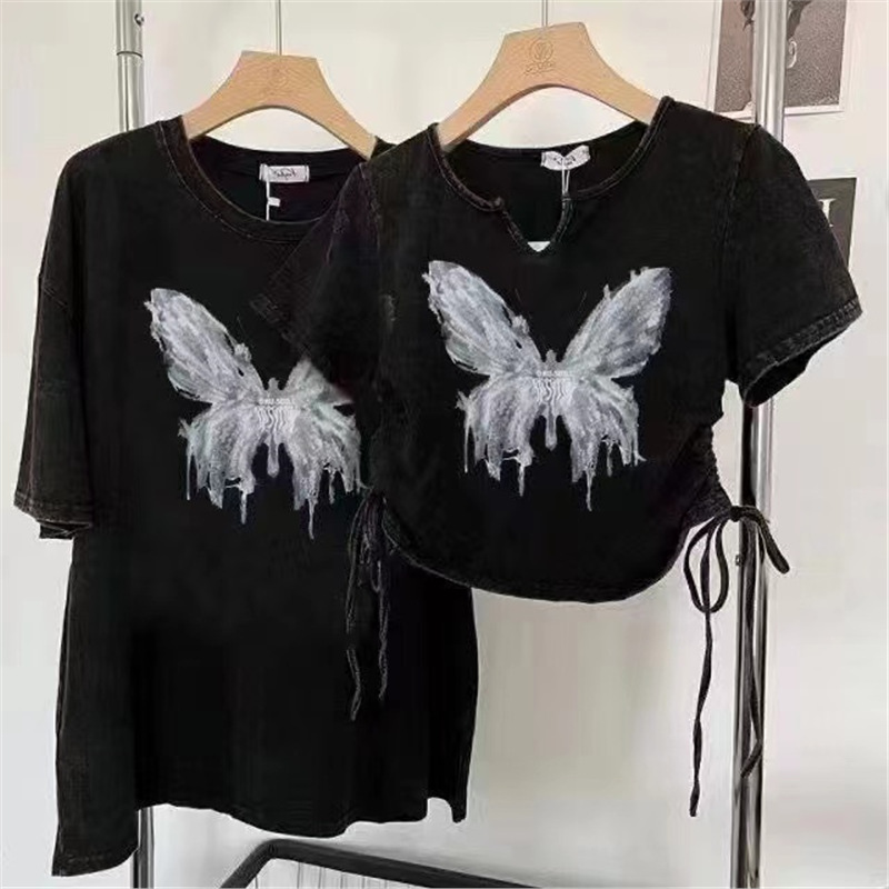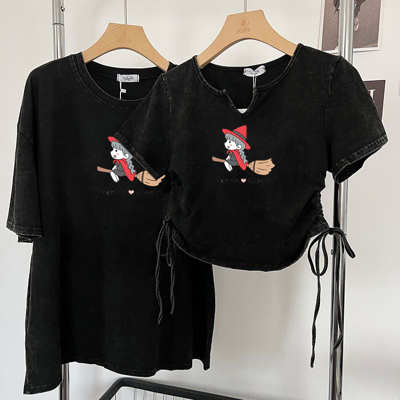 美式复古t恤纯棉短袖女v领修身短款情侣装夏装大码别致甜辣上衣潮