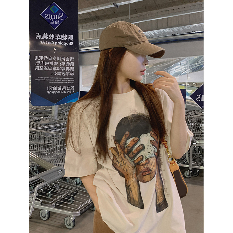 美式复古甜酷辣妹别致情侣上衣印花短袖T恤女2025夏季宽松潮牌ins