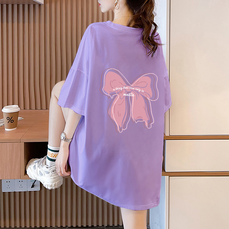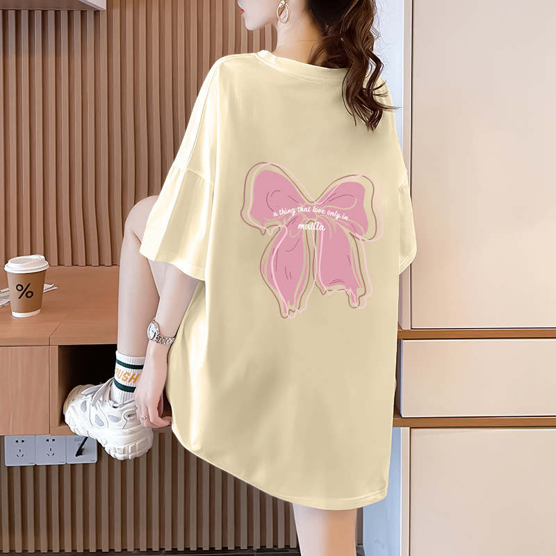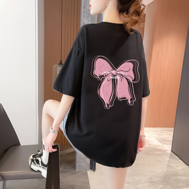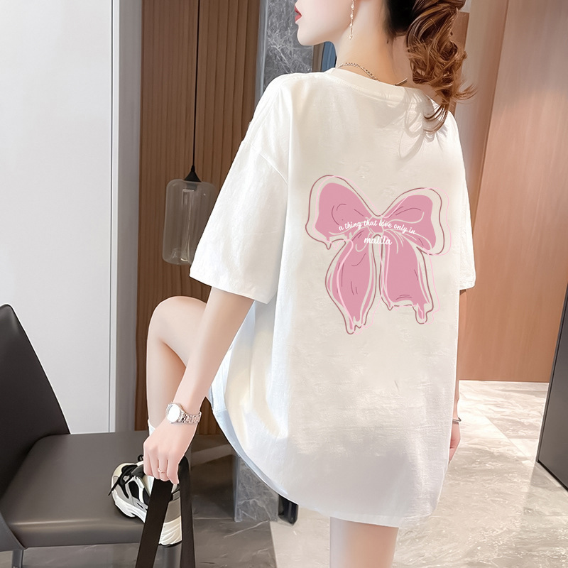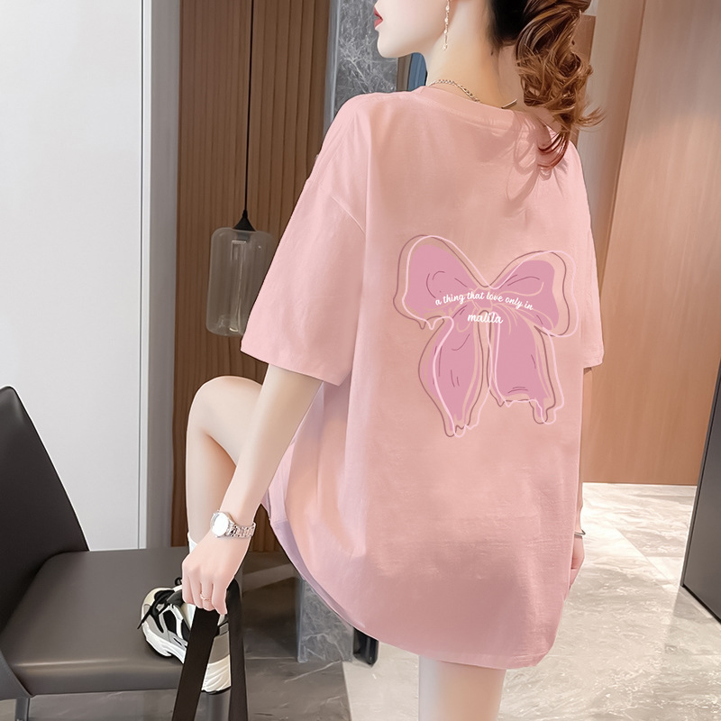 2025年夏季宽松韩版中长款短袖t恤女设计感学生大码纯棉半袖上衣