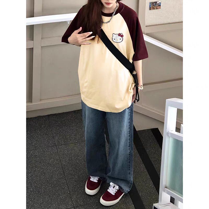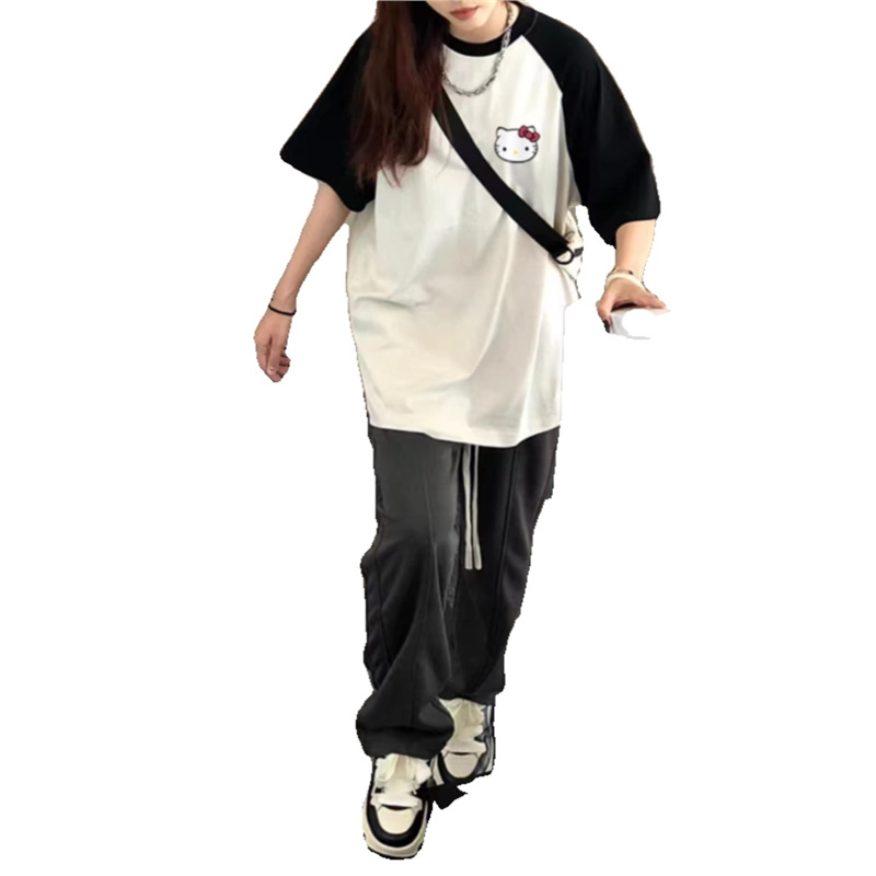 HelloKitty200斤纯棉插肩短袖t恤闺蜜装夏季女大学生宽松显瘦上衣