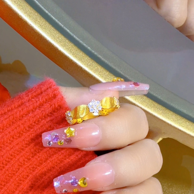 小红书爆款丝绸缎带戒指古法意大利拉丝工艺金色小花点钻精致指环
