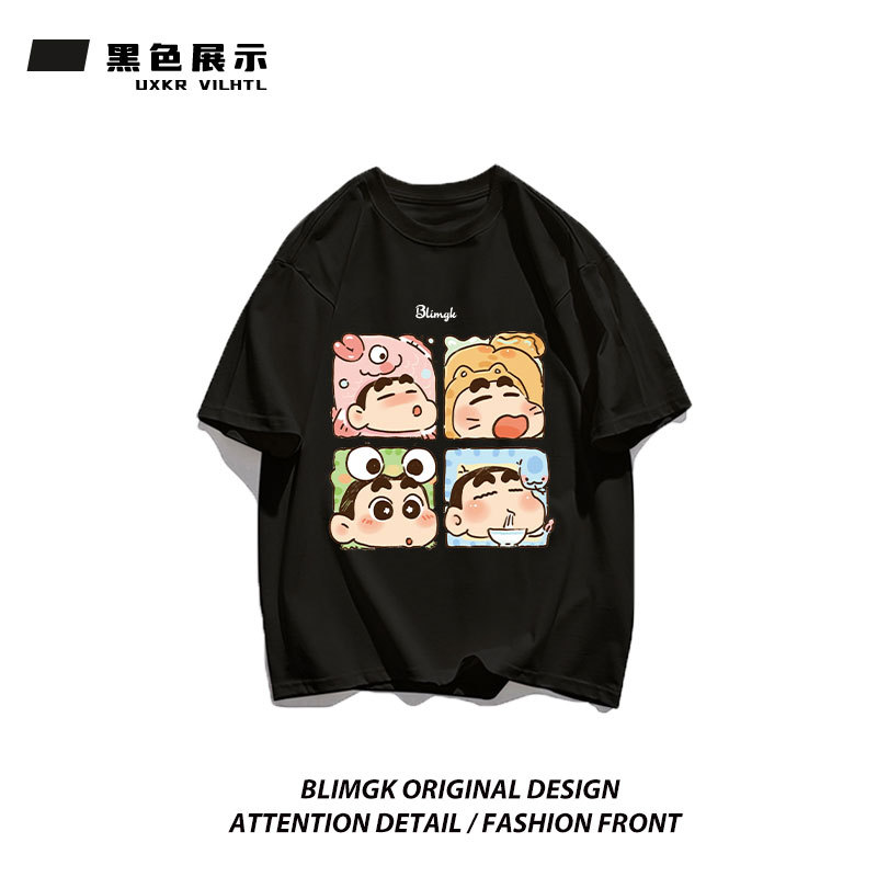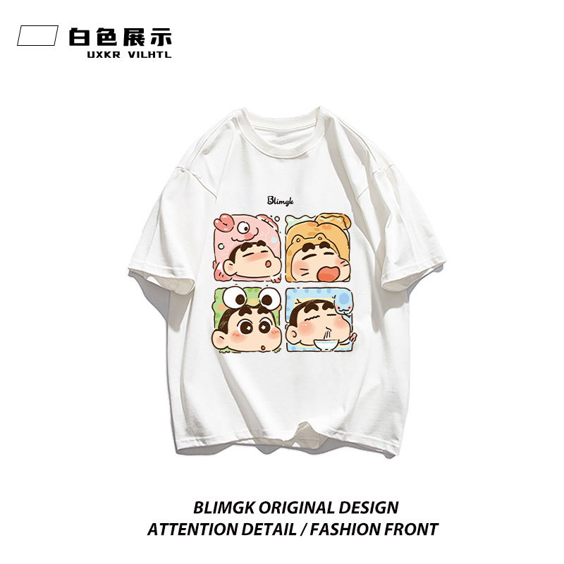 学生t恤纯棉短袖新款日系卡通夏装蜡笔小新大码胖mm休闲印花上衣