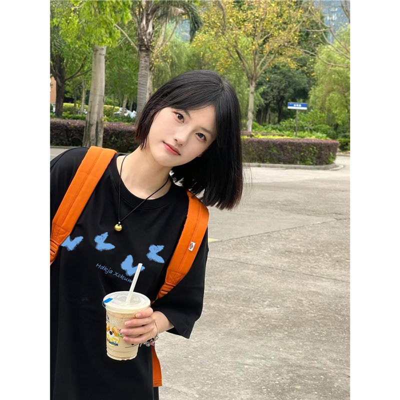 学生纯棉短袖t恤女2025夏季新款爆款设计感小众美式宽松大码上衣