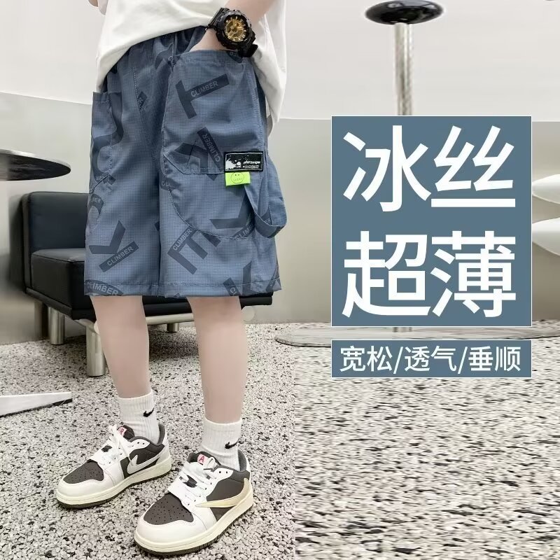 男童夏季迷彩冰丝五分裤中大童男孩迷彩工装短裤潮牌儿童薄款中裤