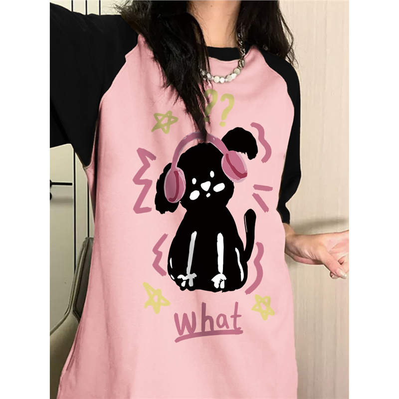 200斤纯棉粉色插肩短袖t恤闺蜜装夏季女大学生多巴胺宽松显瘦上衣