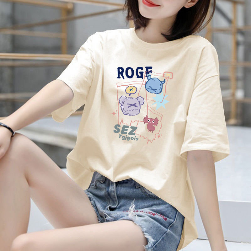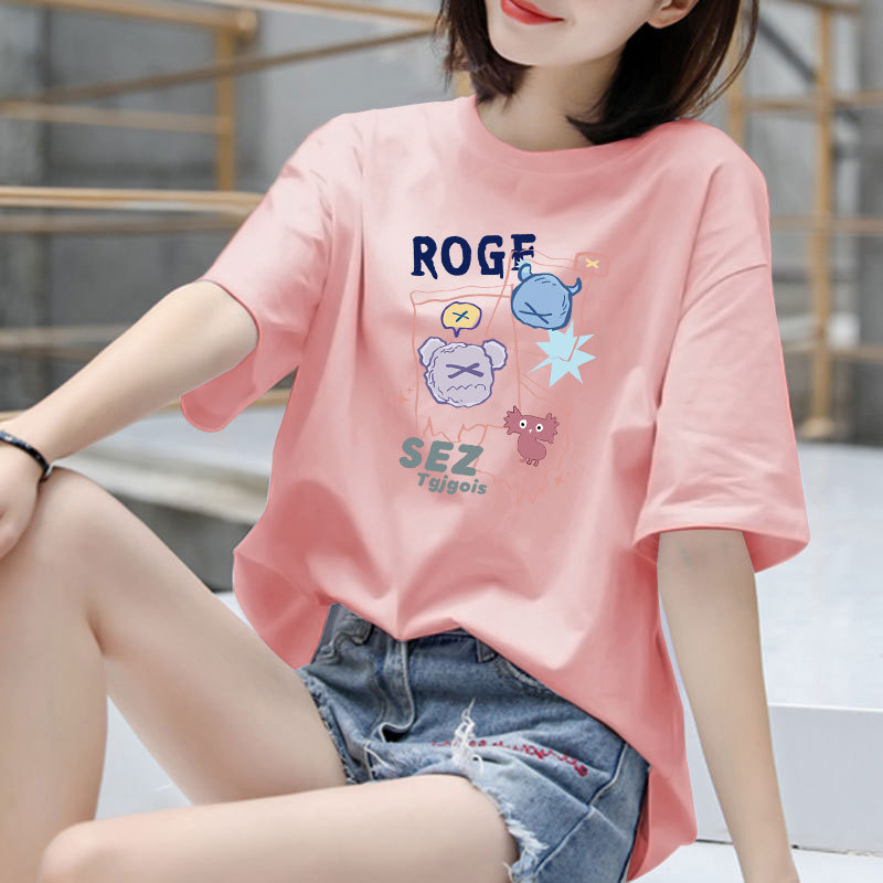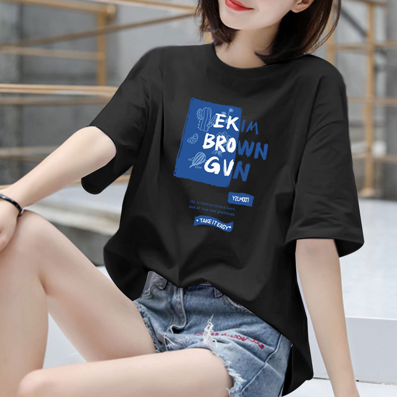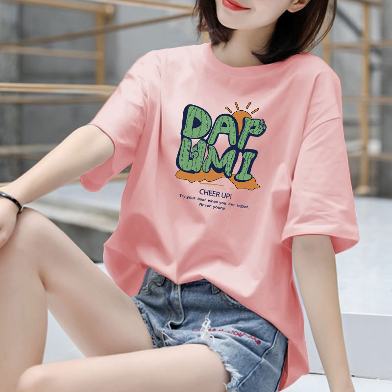 100%纯棉短袖t恤女2025新款夏季大码韩版宽松上衣学生百搭洋气潮