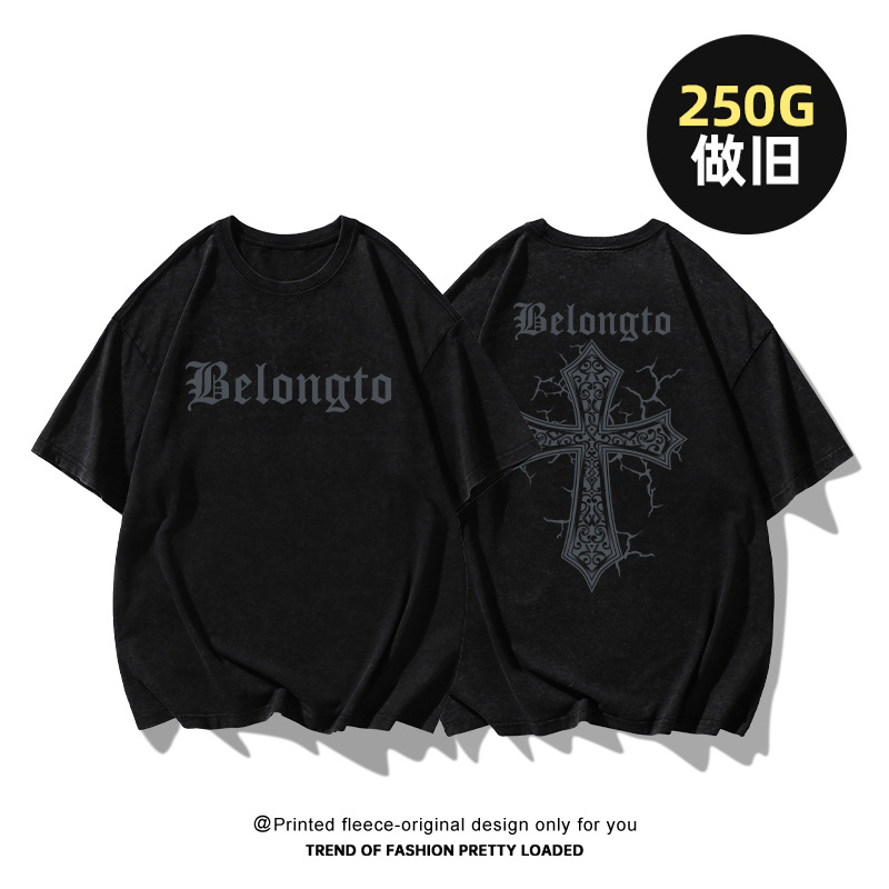 小众潮牌高街暗黑风短袖男夏ins美式潮流宽松情侣半袖情侣t恤
