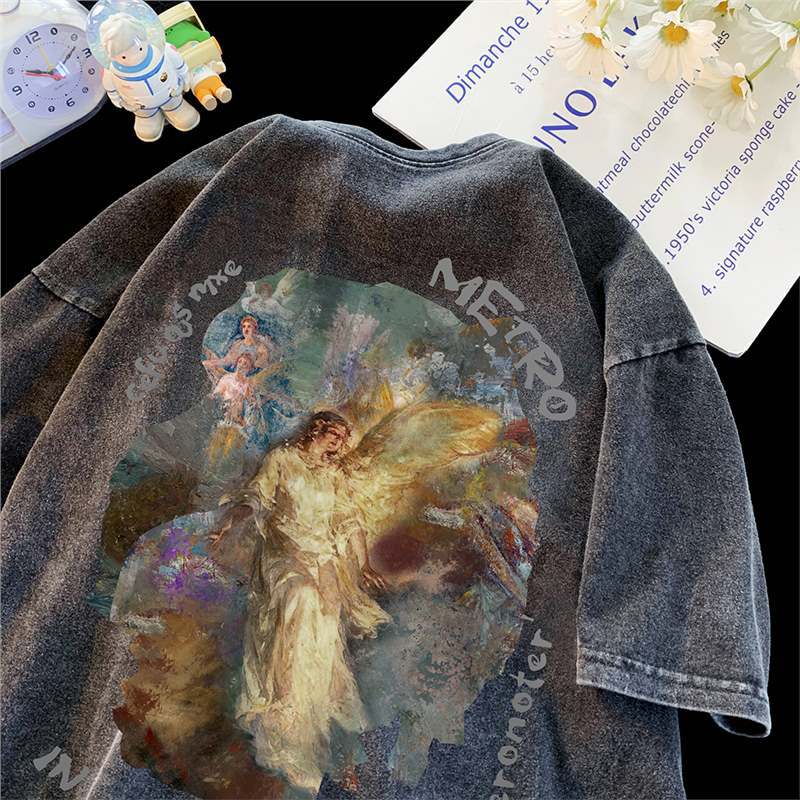 短袖T恤女新款夏法式复古高街hiphop设计感小众情侣半袖上衣