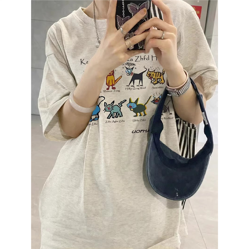 纯棉韩系ins短袖t恤女2025新款时髦洋气夏季设计感小众宽松上衣服