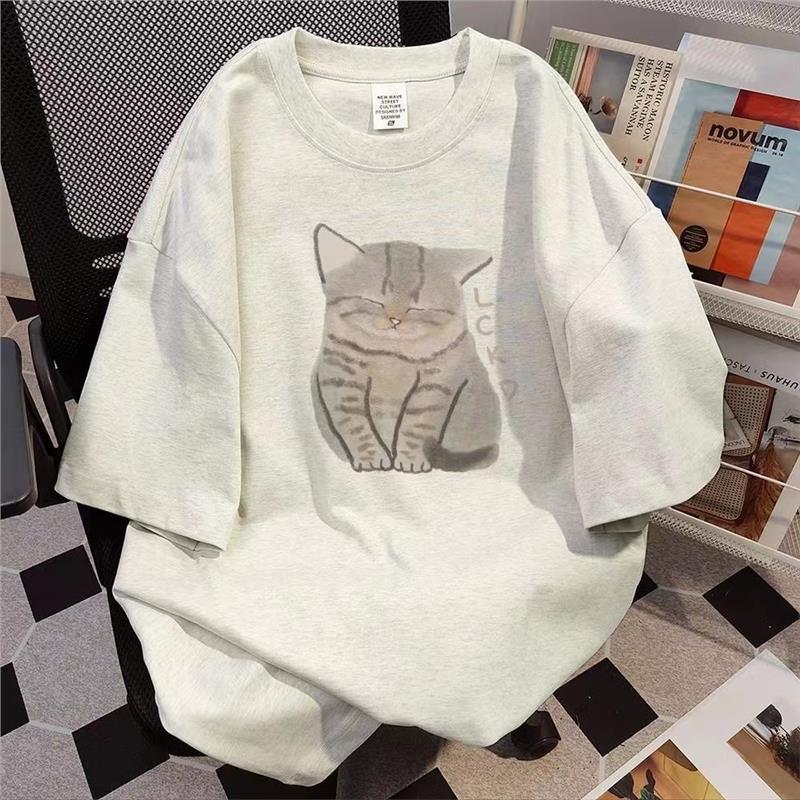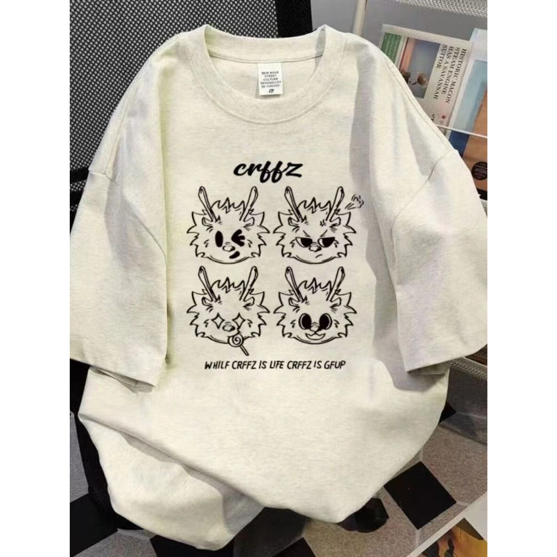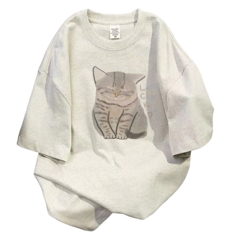 纯棉短袖t恤女可爱白灰色宽松半袖学生甜美百搭夏新款小众印花