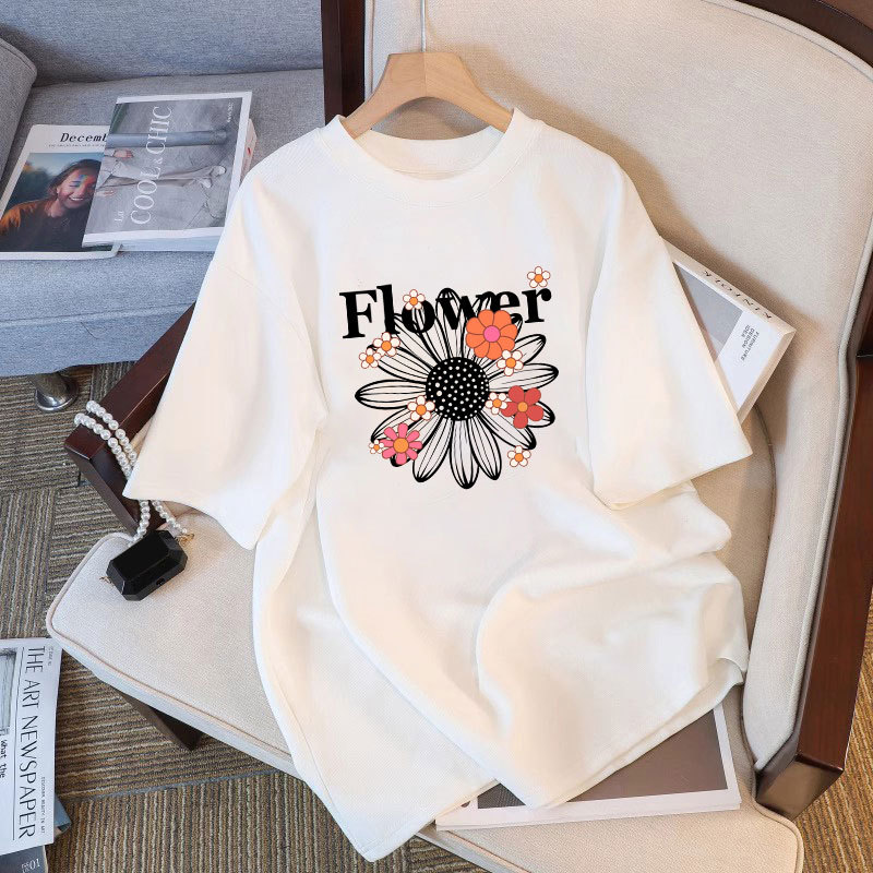 大尺码白色印花纯棉短袖女t恤2025夏季新款休闲内搭胖mm宽松半袖