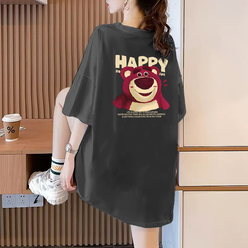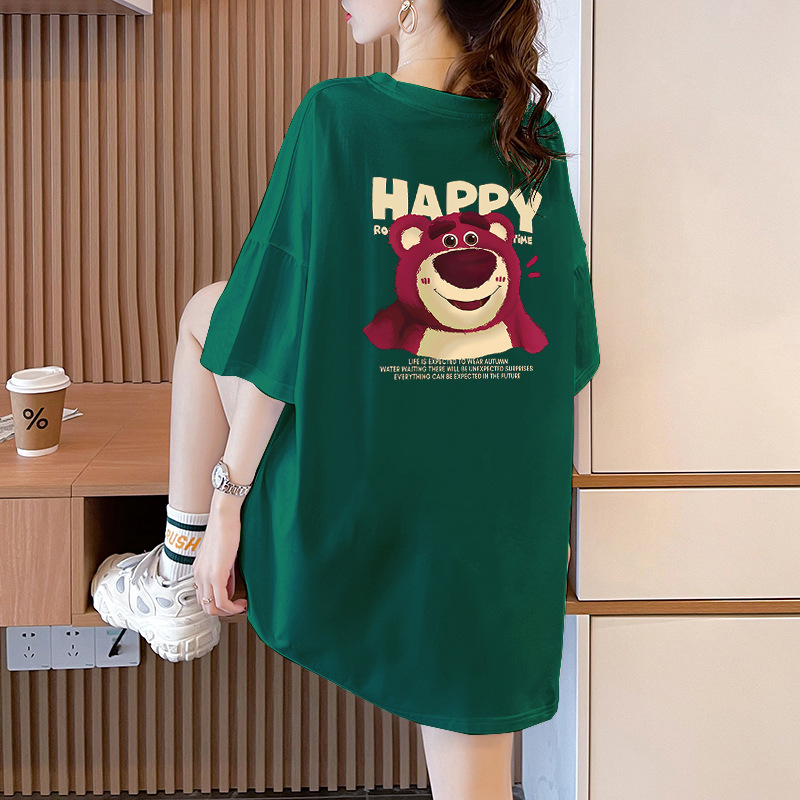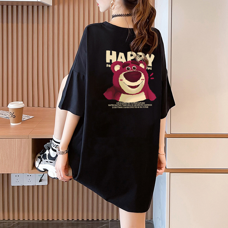 火龙果卡通印花短袖T恤女2025夏新款学生宽松纯棉大码遮臀上衣潮