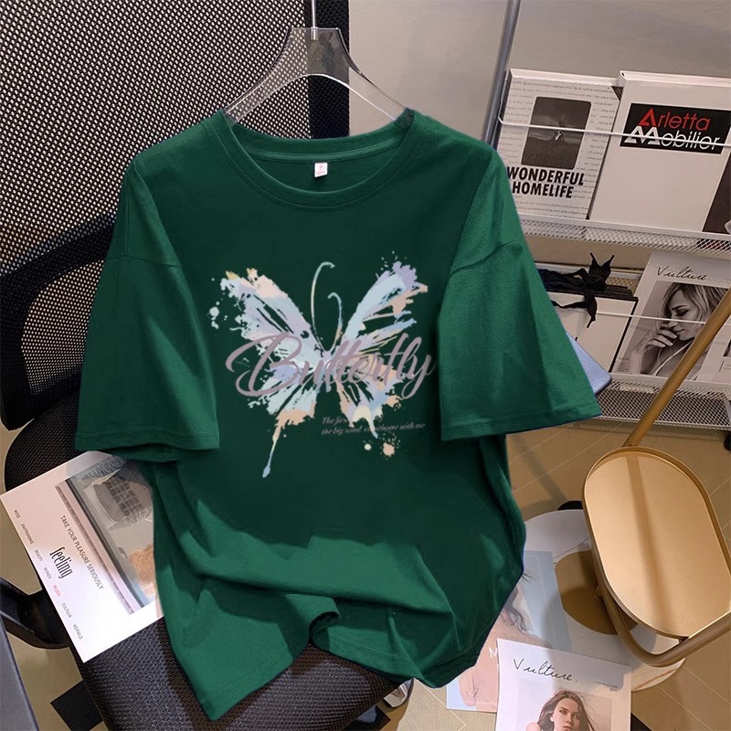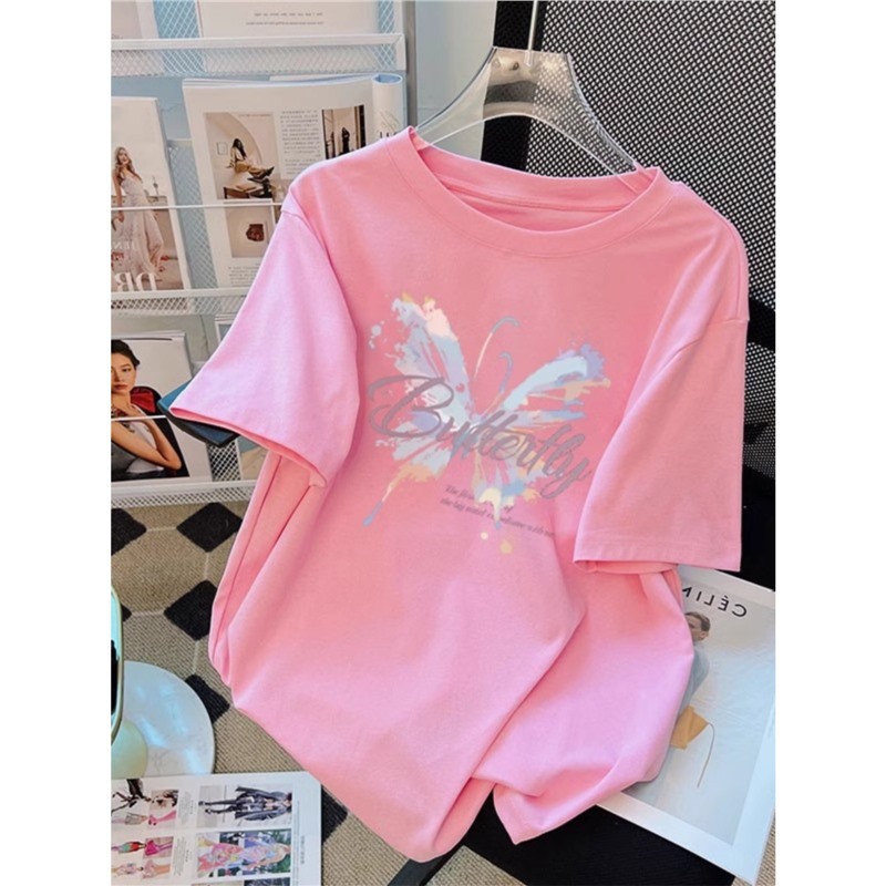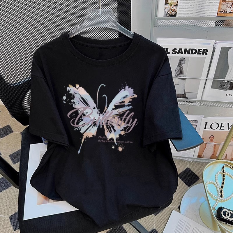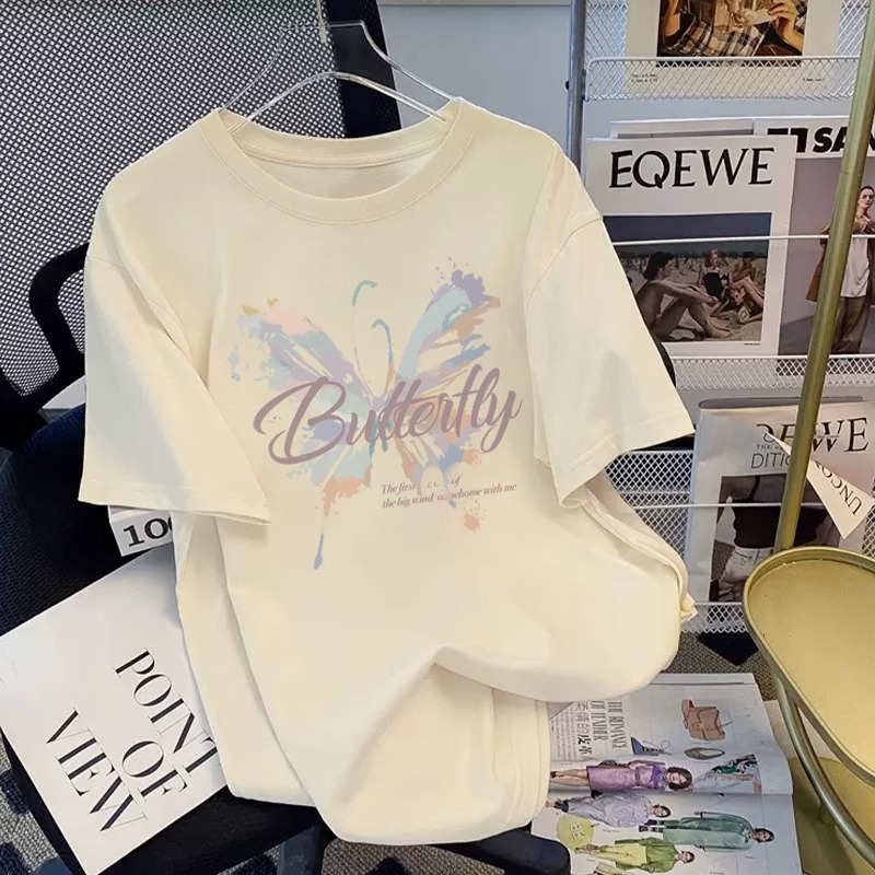 大码上衣圆领短袖t恤女2025夏季新款爆款蝴蝶印花设计感时尚百搭