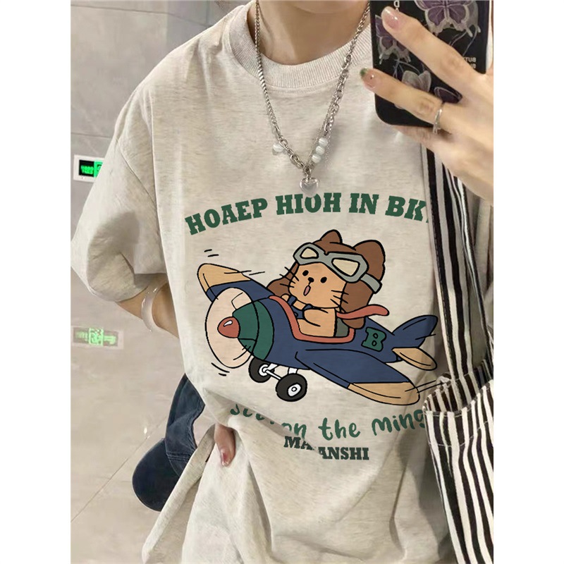 圆领宽松t恤女短袖新款夏季设计感独特显瘦遮肉上衣