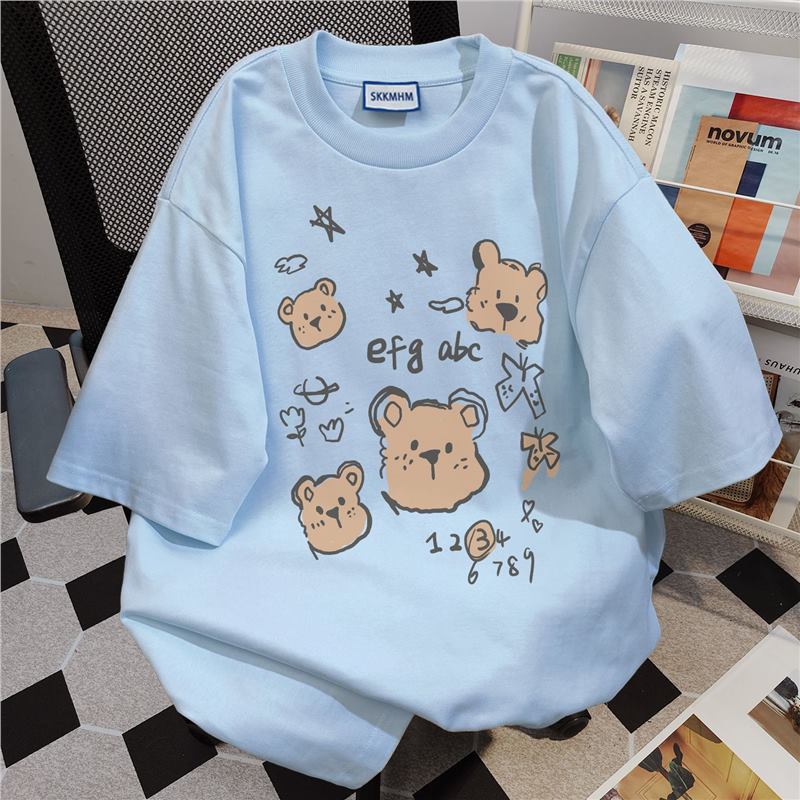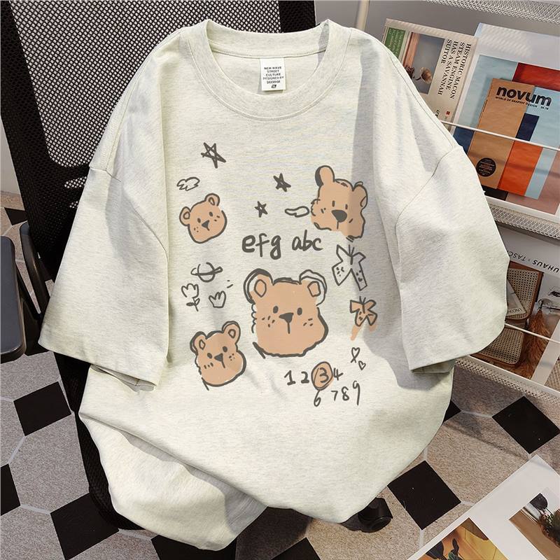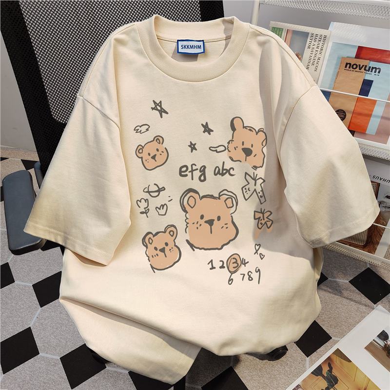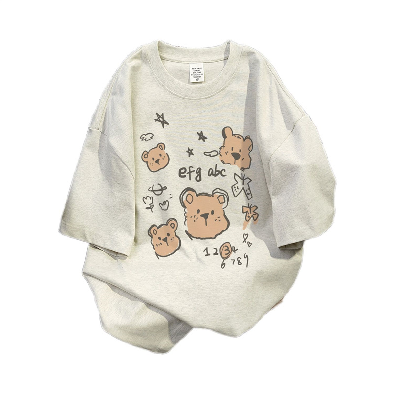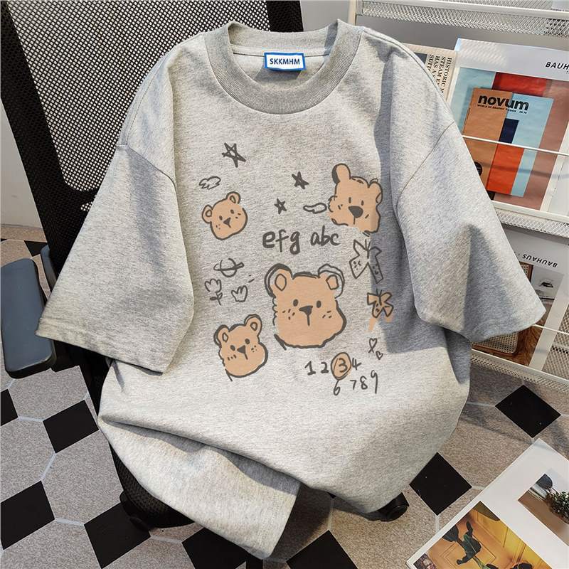 2025美式hiphop纯棉设计感内搭卡通印花短袖T恤夏季宽松大码上衣