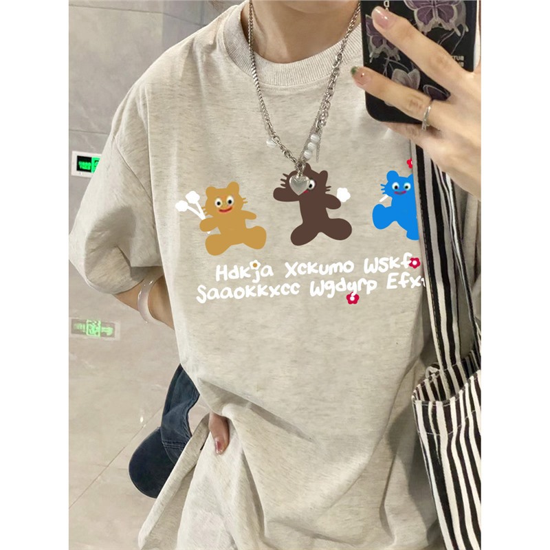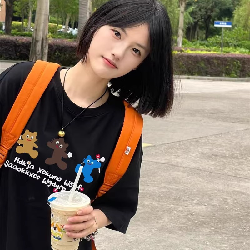 大版短袖t恤女2025新款爆款夏季纯棉设计感正肩美式高街宽松上衣