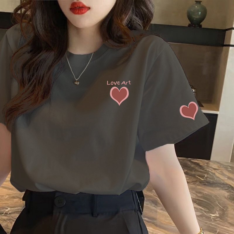 纯棉大码圆领短袖t恤女装夏季2025年新款奶杏色宽松显瘦学生上衣