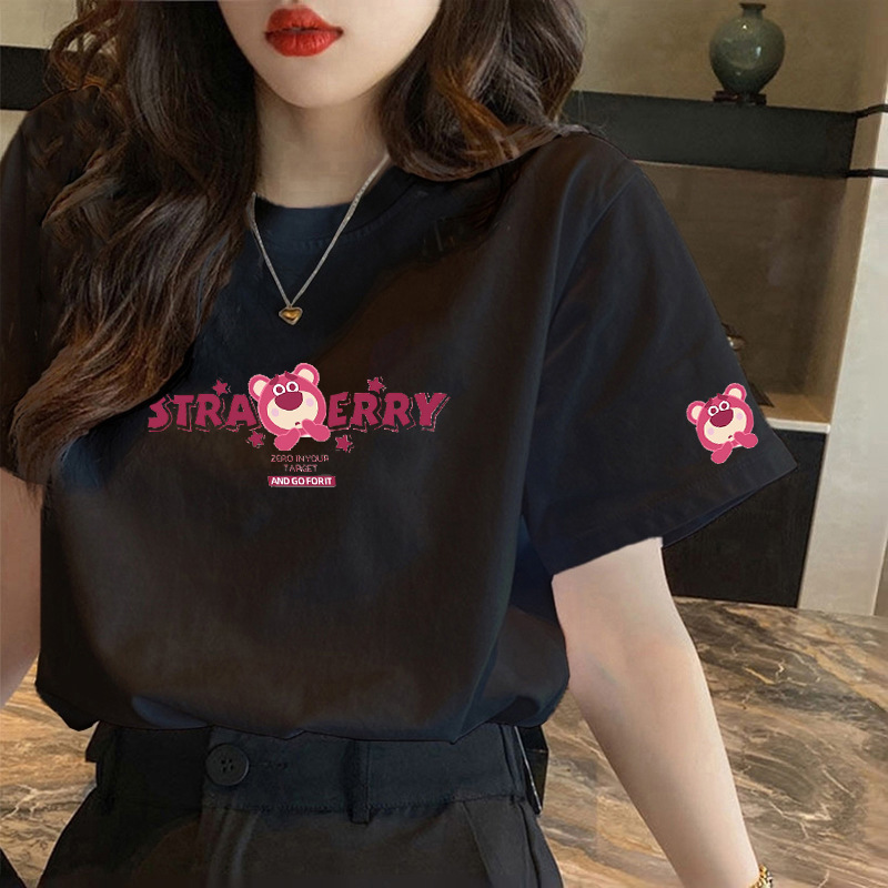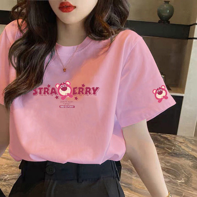 大尺码欧货白色百搭学生纯棉卡通短袖t恤2025夏新款粉色宽松上衣