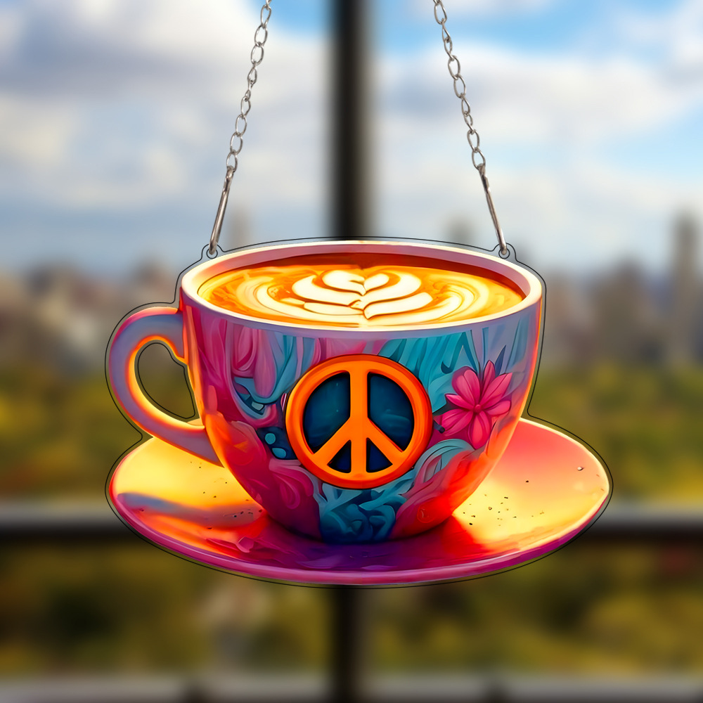 跨境卡通咖啡杯亚克力礼物窗户门挂艺术节日场景装饰挂件挂饰